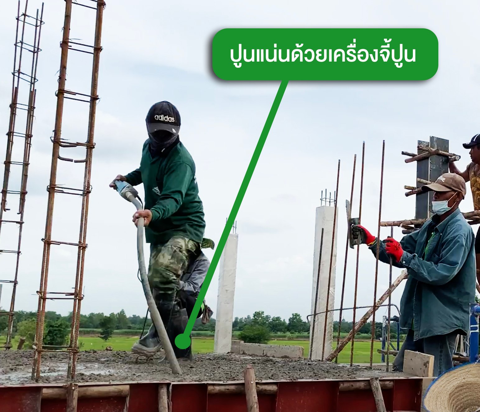 ข้อดี ::: จะทำให้ได้คอนกรีตที่มีเนื้อแน่นสม่ำเสมอ ไม่แยกตัว ไม่เป็นรูโพรง มีรอยแตกร้าวน้อยมีผิวเรียบสม่ำเสมอ มีอายุการใช้งานที่ยาวนานมาก บ้านคุณภาพจัดเต็มทุกรายละเอียด ใช้เครื่องจี้เขย่าคอนกรีต ต้องใช้ให้ถูกวิธี